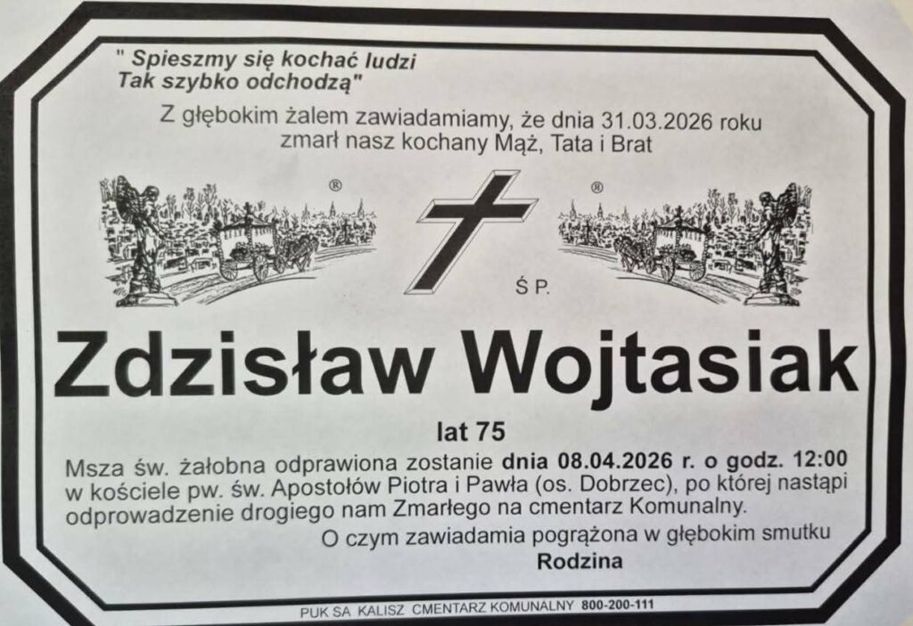 Pogrzeb odbędzie się 8 kwietnia 2026 o godzinie 12.00.